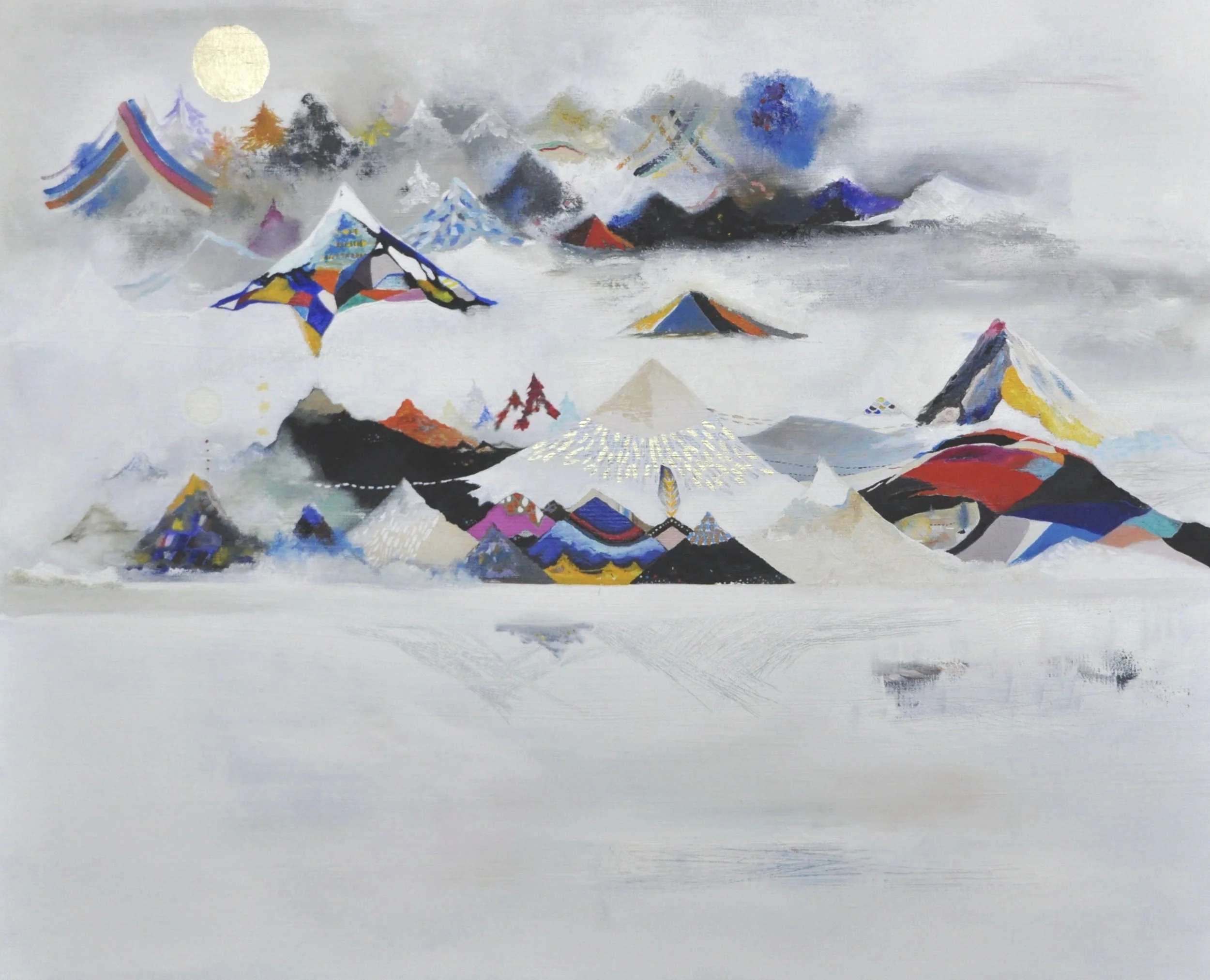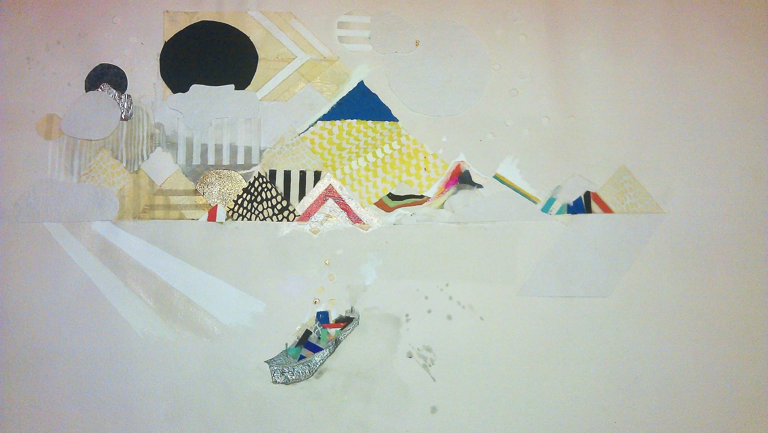 Untitled (Mountain Boat), gouache and collage, 29 x 23”, 2013