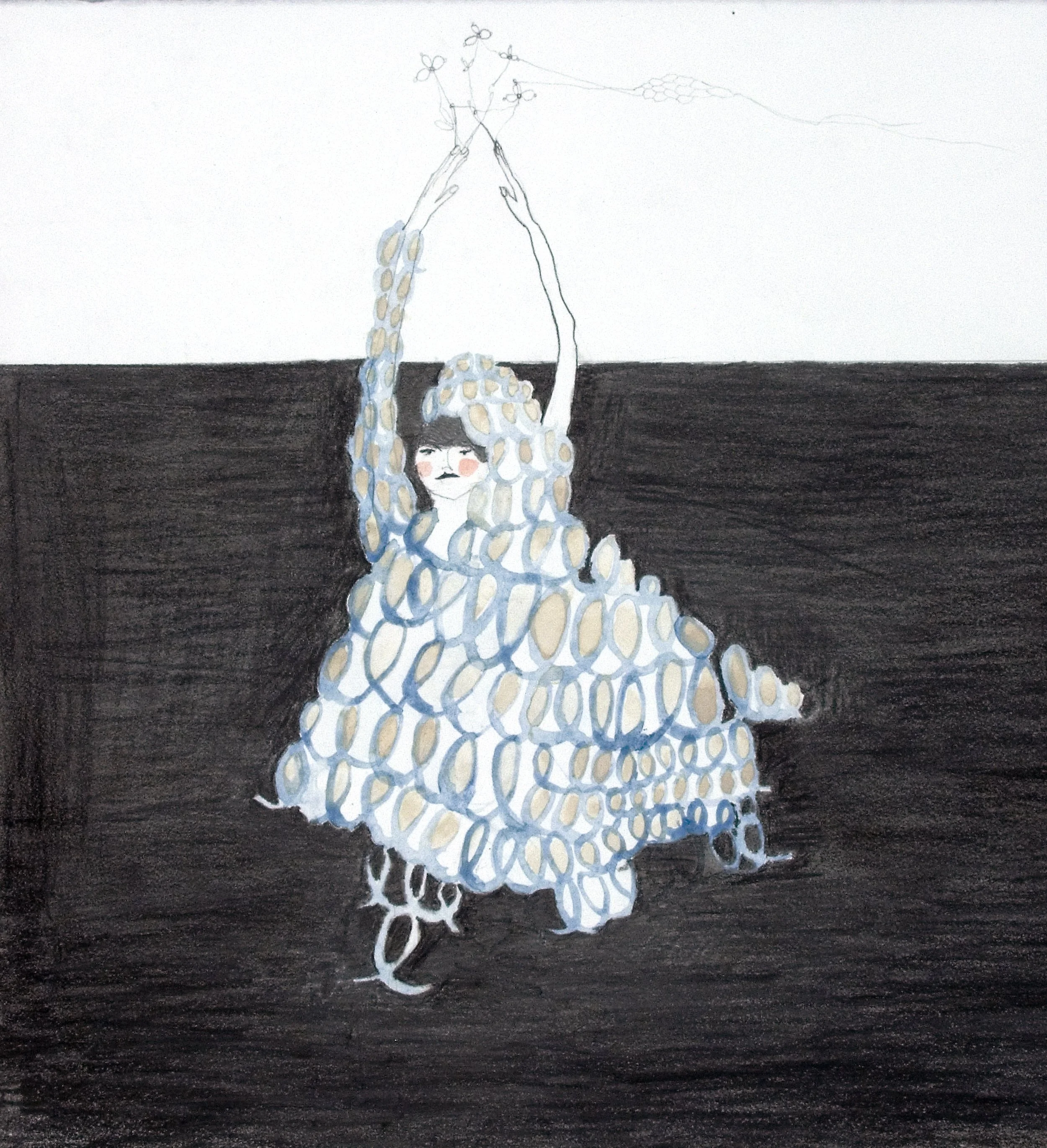 Floater Swimmer, gouache and pencil, 8 x 10”, 2010
