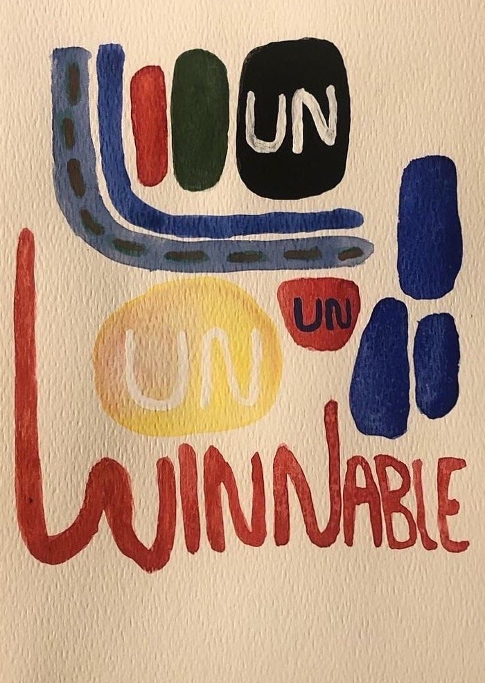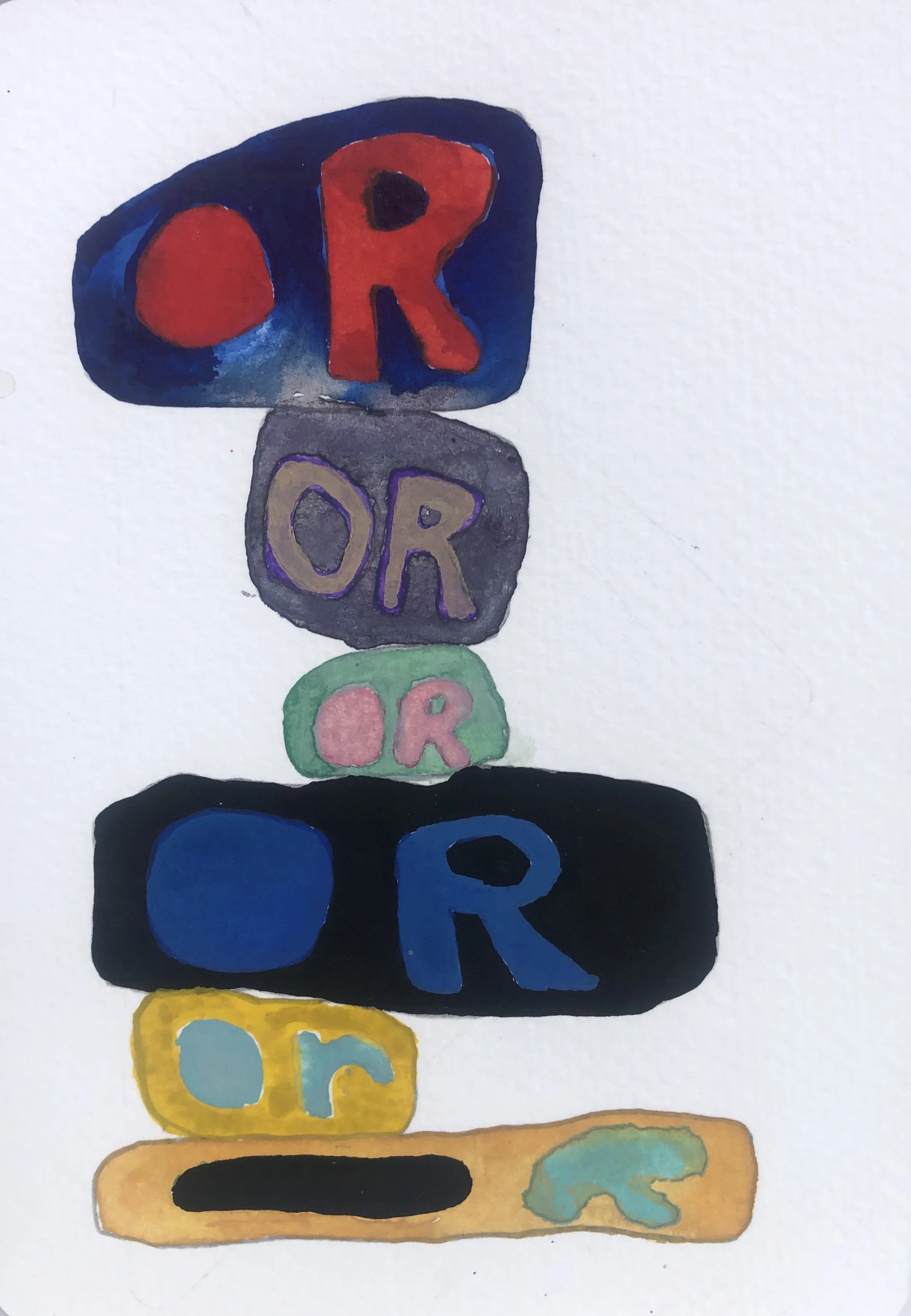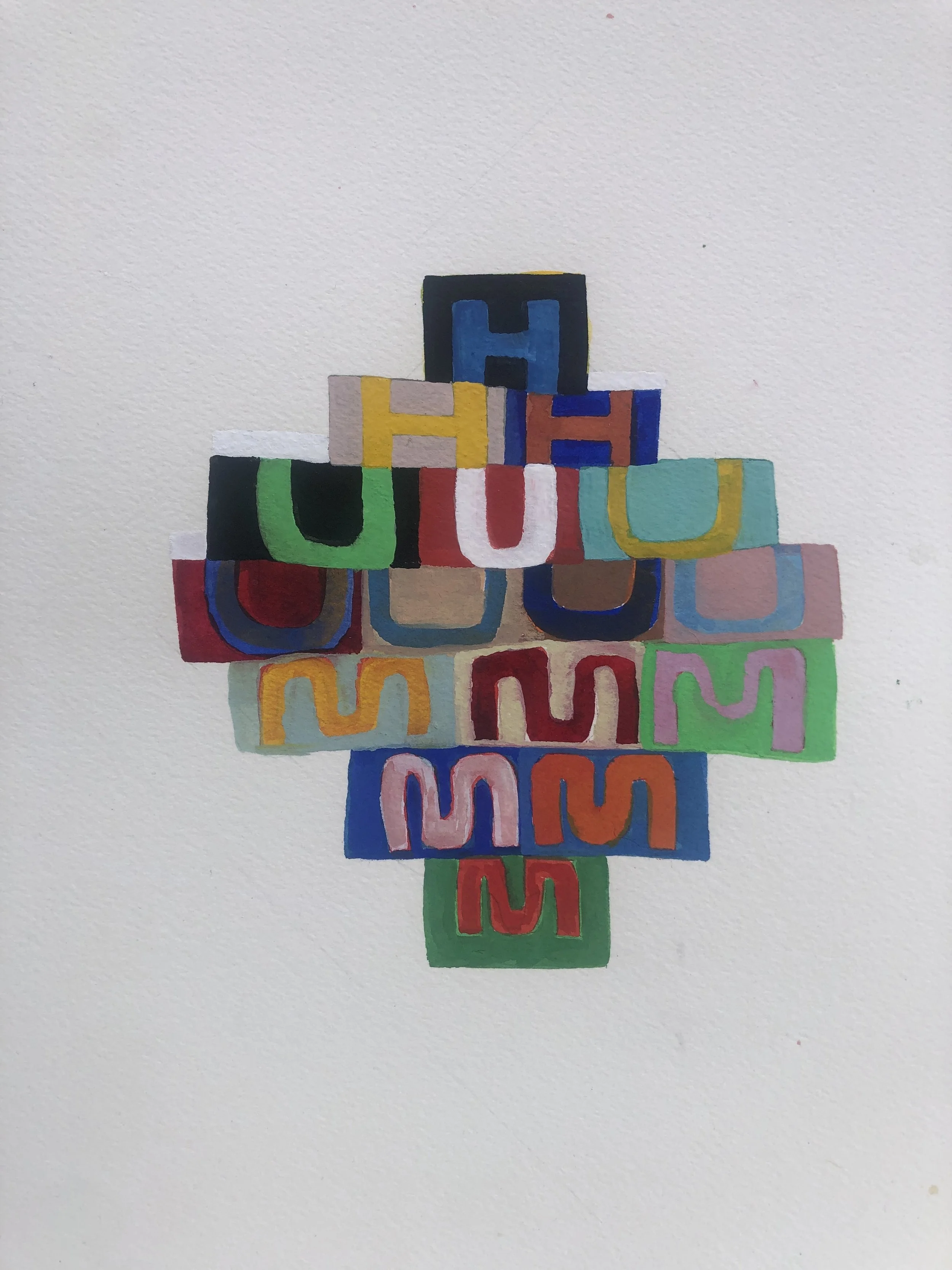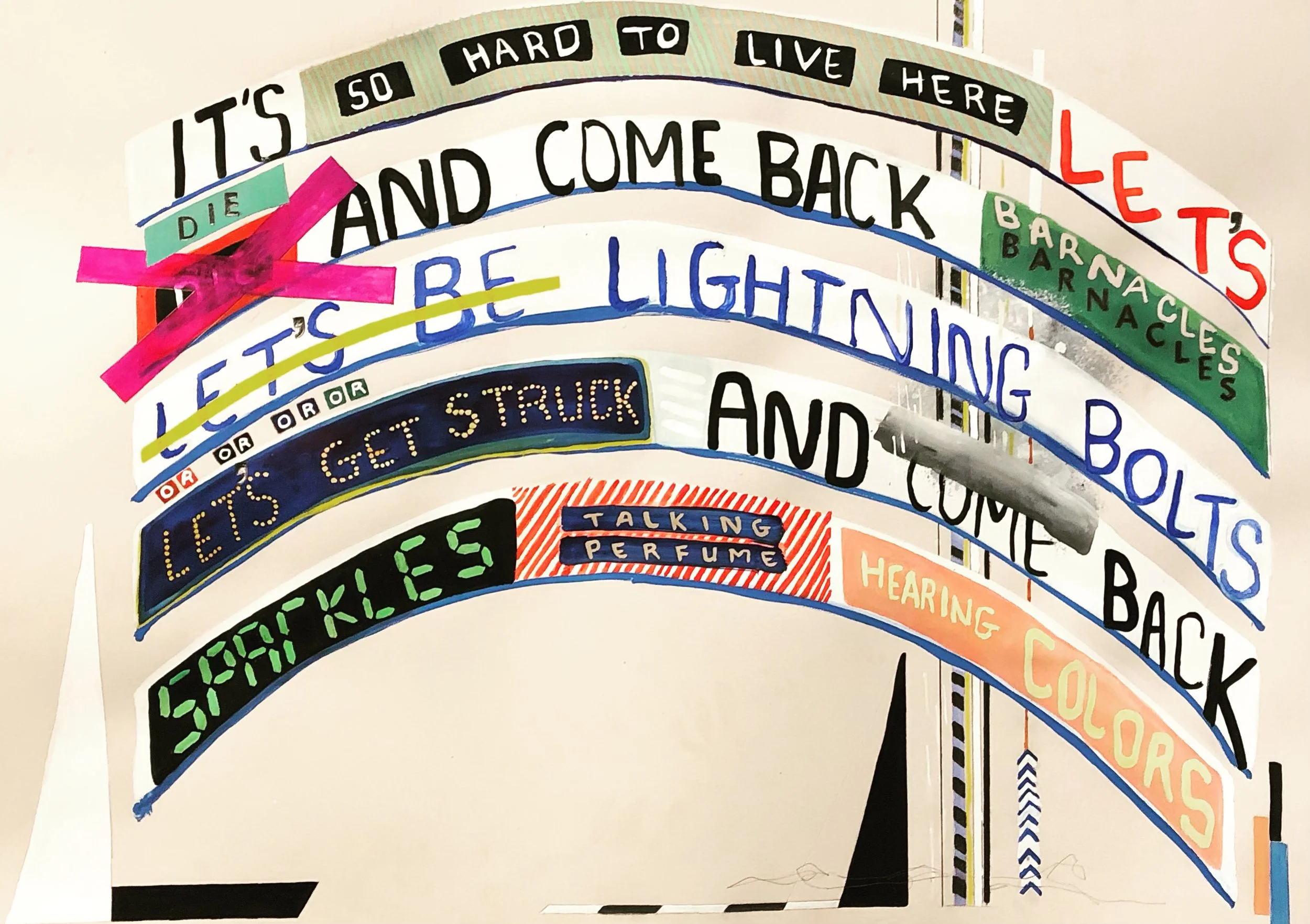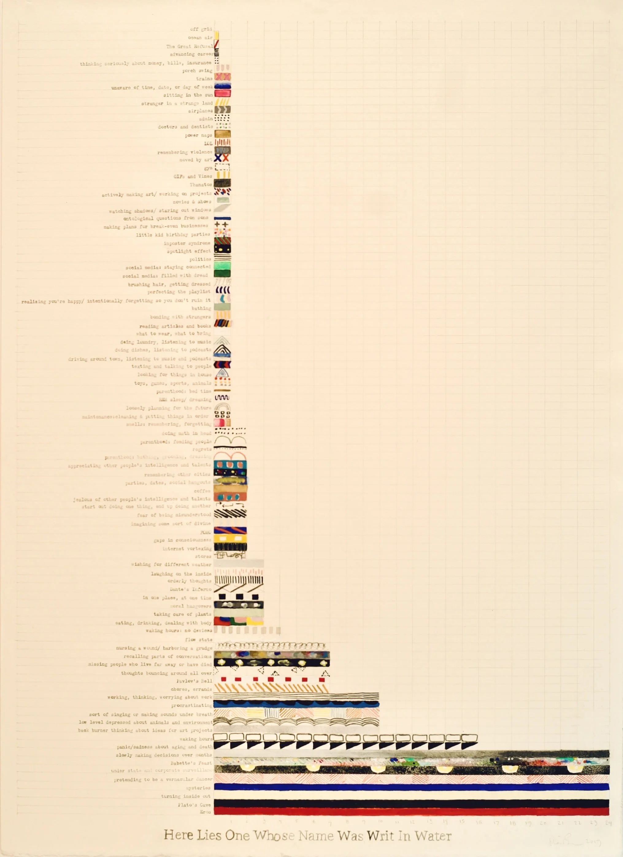 Here Lies, gouache and typewriter, 20 x 26”, 2019