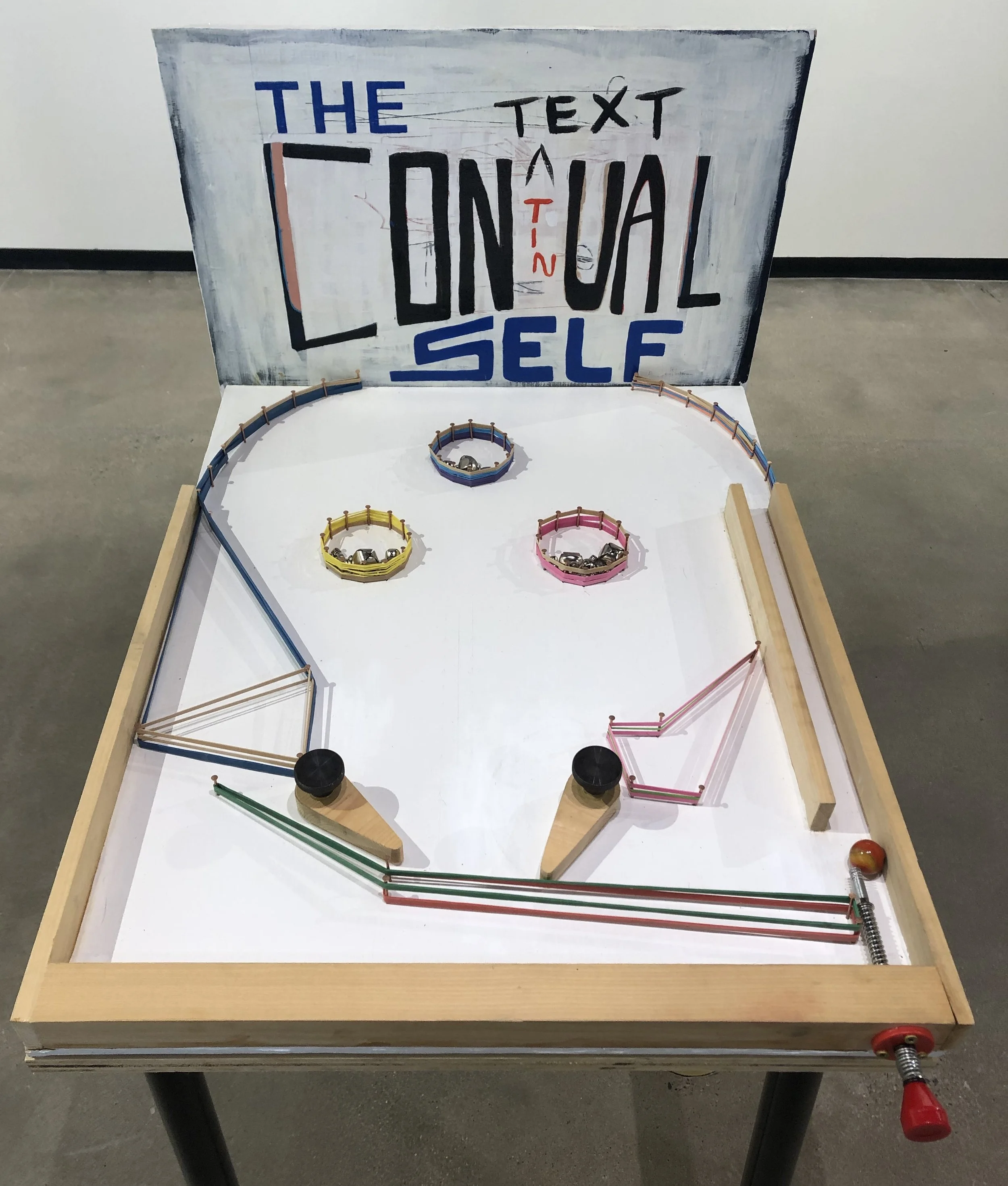 The Contextual Self, acrylic, rubber bands, and hardware on wood board, 20 x 24”, 2020