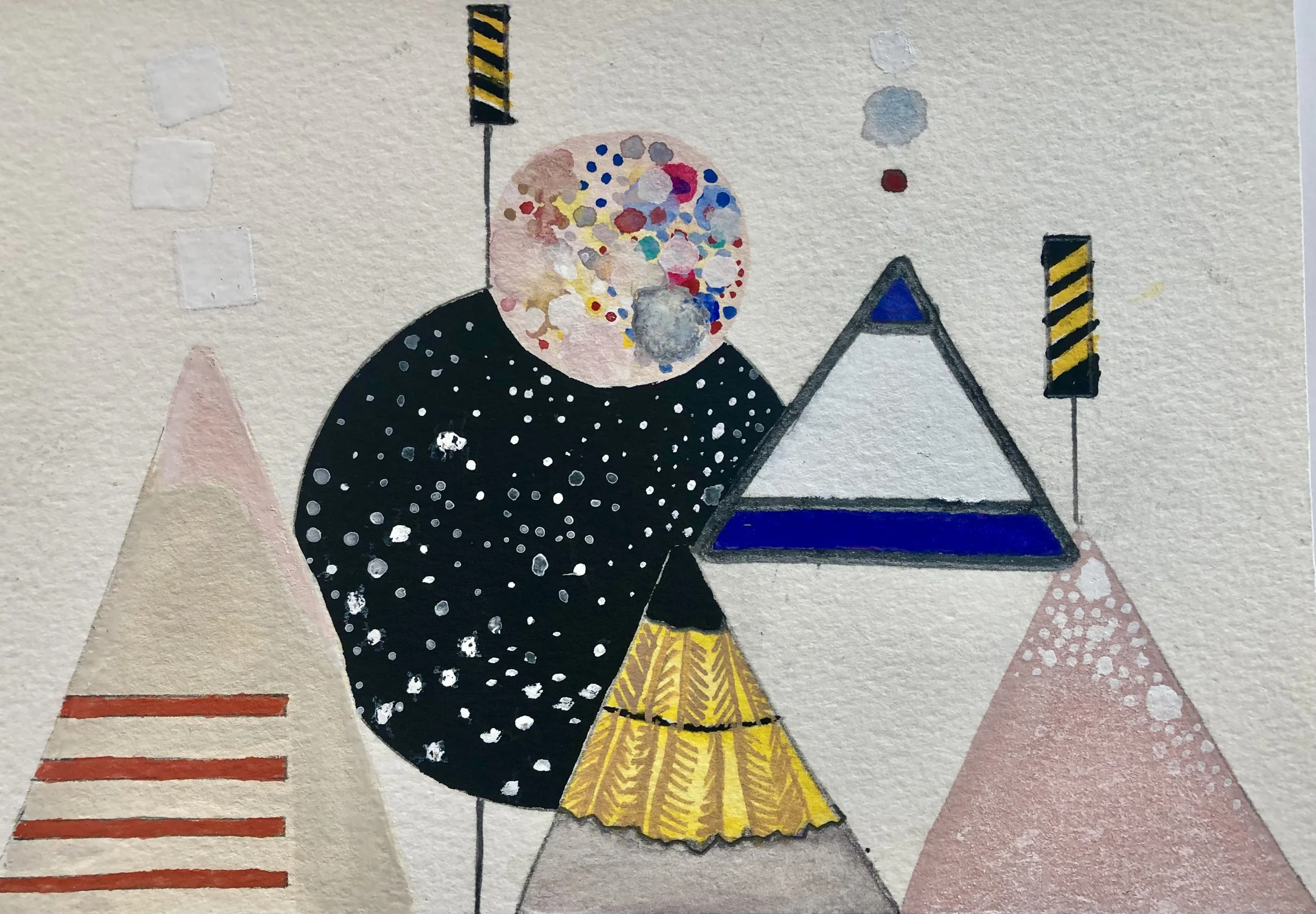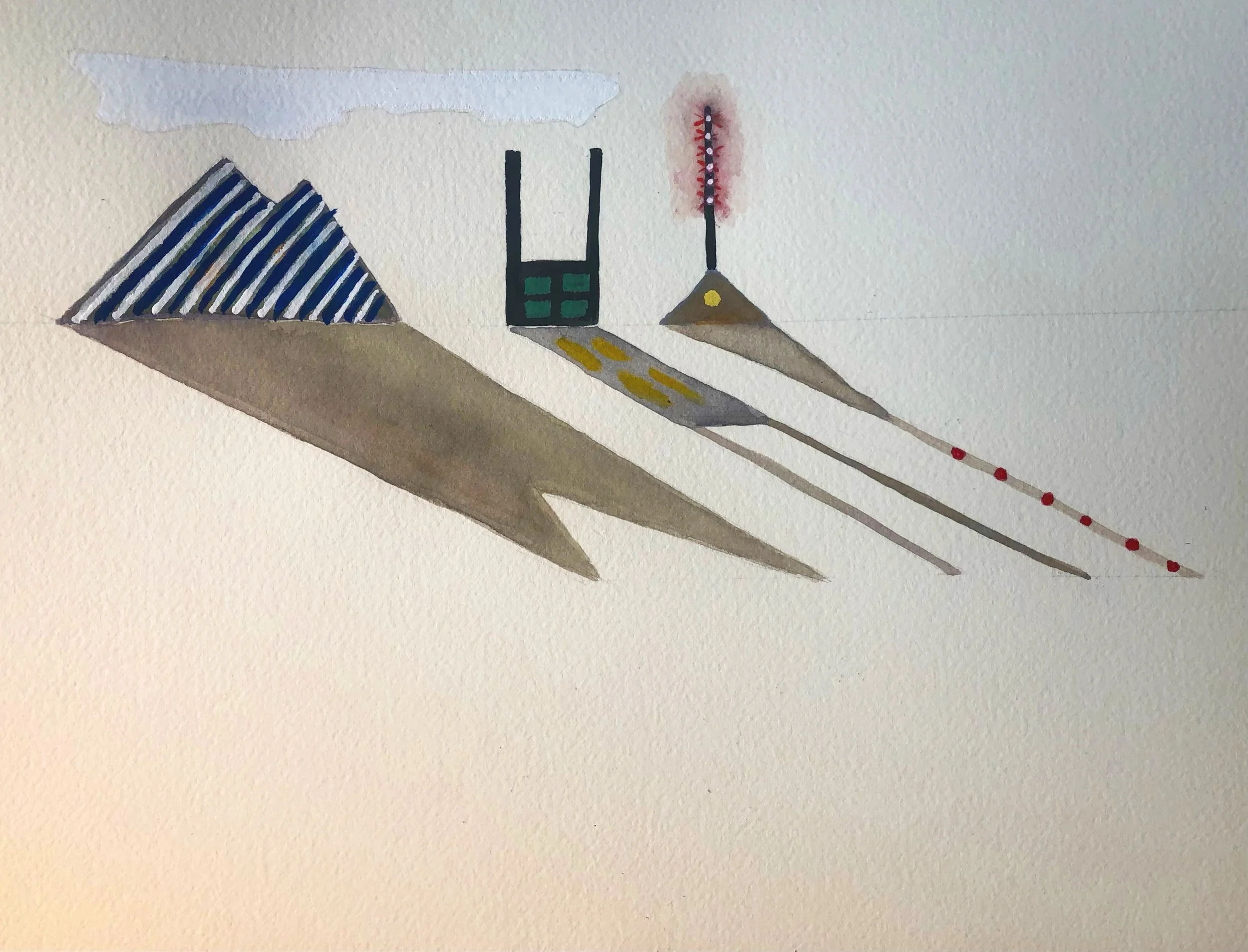 Untitled (One Place at One Time), gouache, 10 x 14”, 2022
